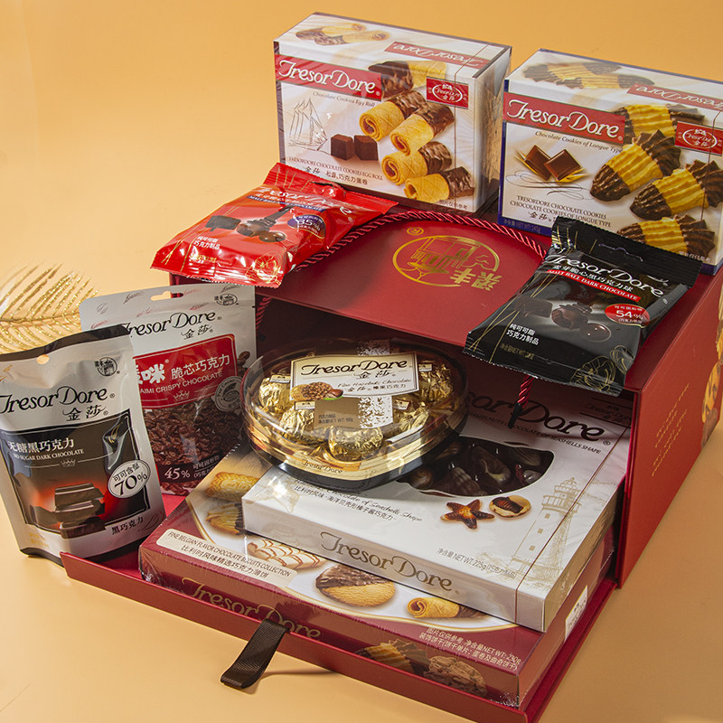 梁丰巧克力零食礼盒红色曲奇贝壳巧克力大礼盒年货节礼物