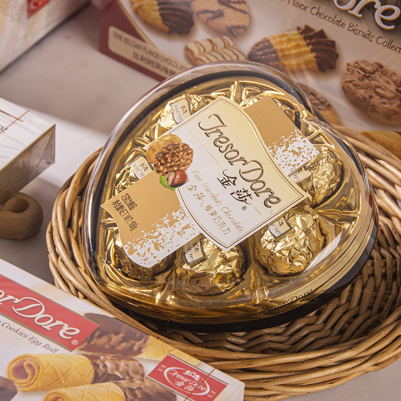 梁丰巧克力零食礼盒红色曲奇贝壳巧克力大礼…