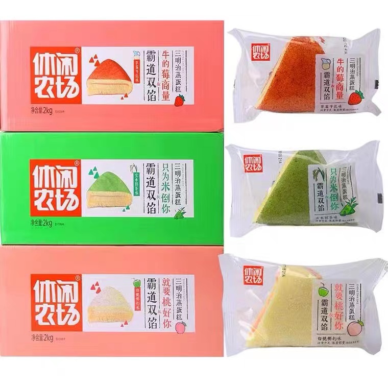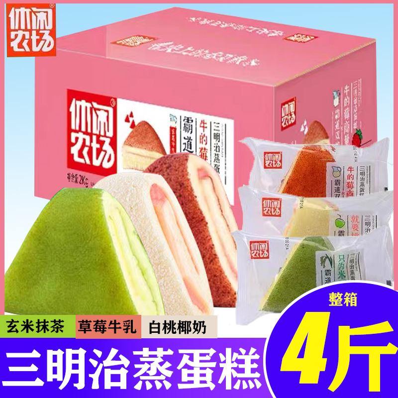 休闲农场三明治蒸蛋糕玄米抹茶味草莓夹心糕点早餐面包整箱零食品