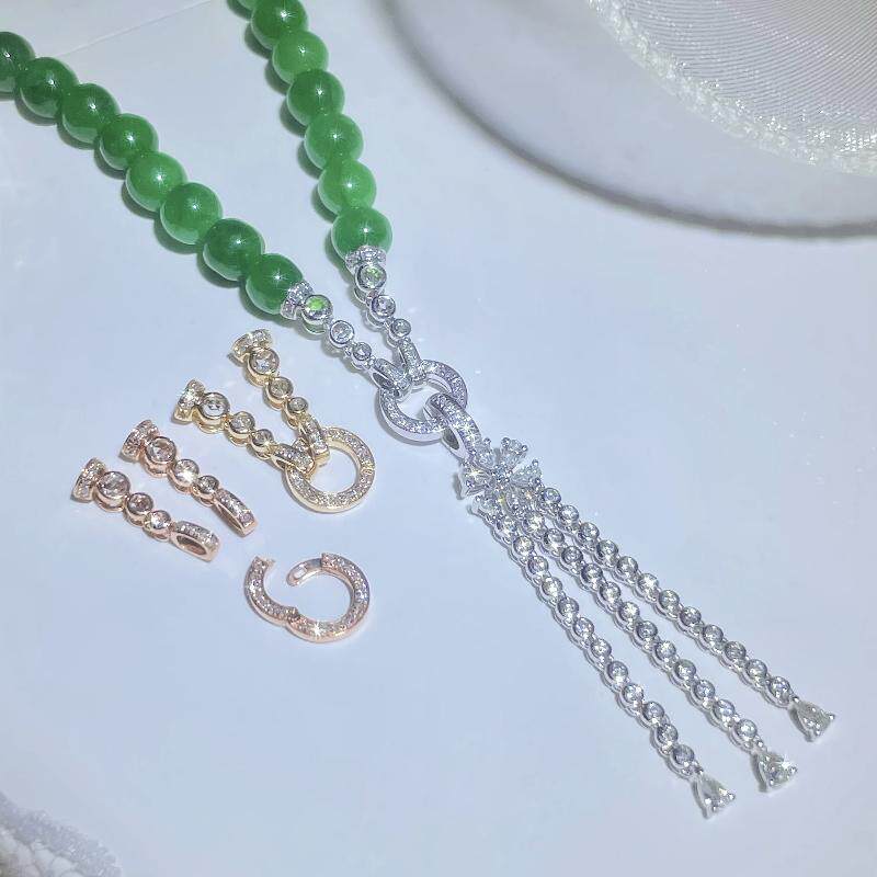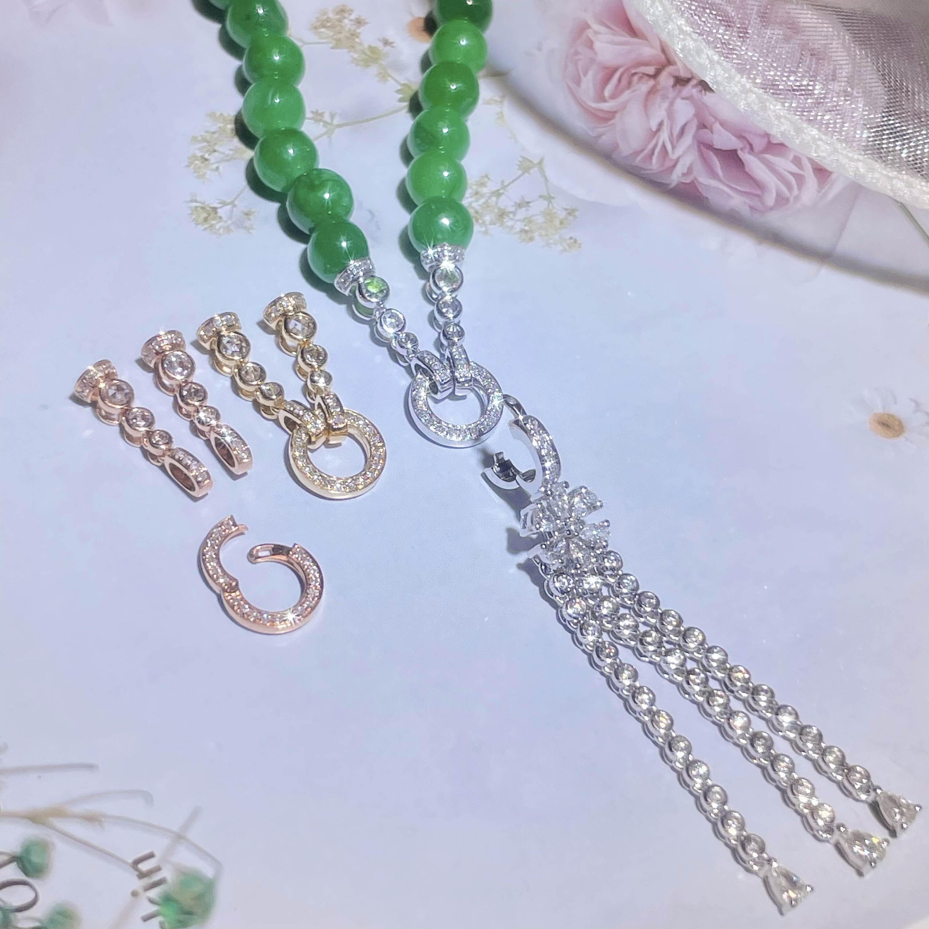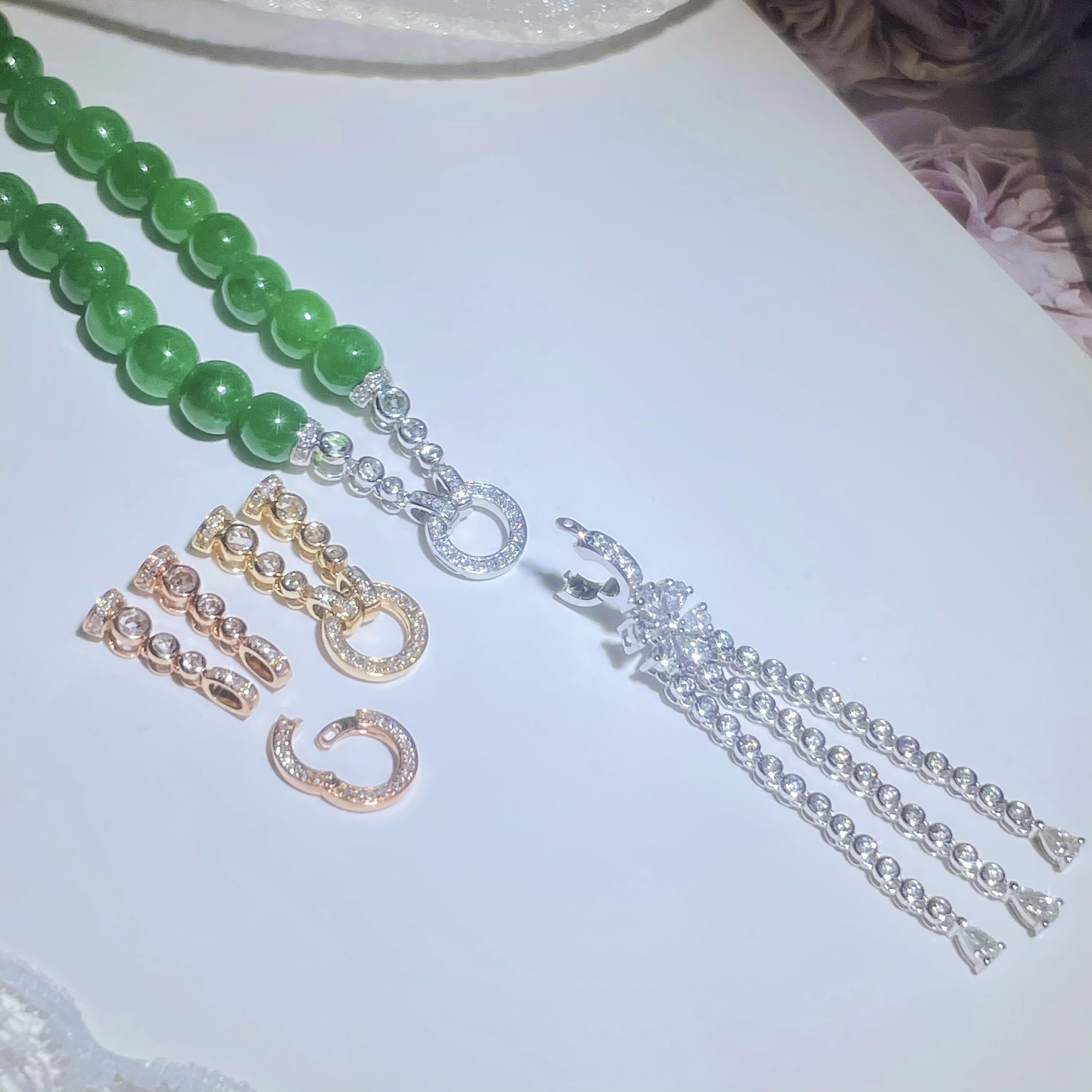 小米珠链扣18K金镶嵌钻石流苏吊坠翡翠项链珍珠手链连接扣头配件