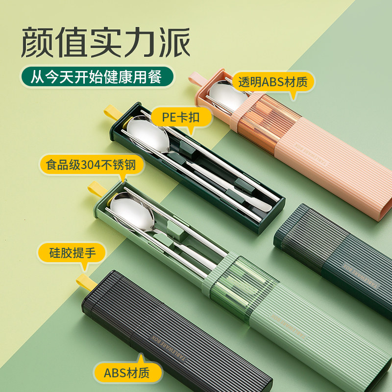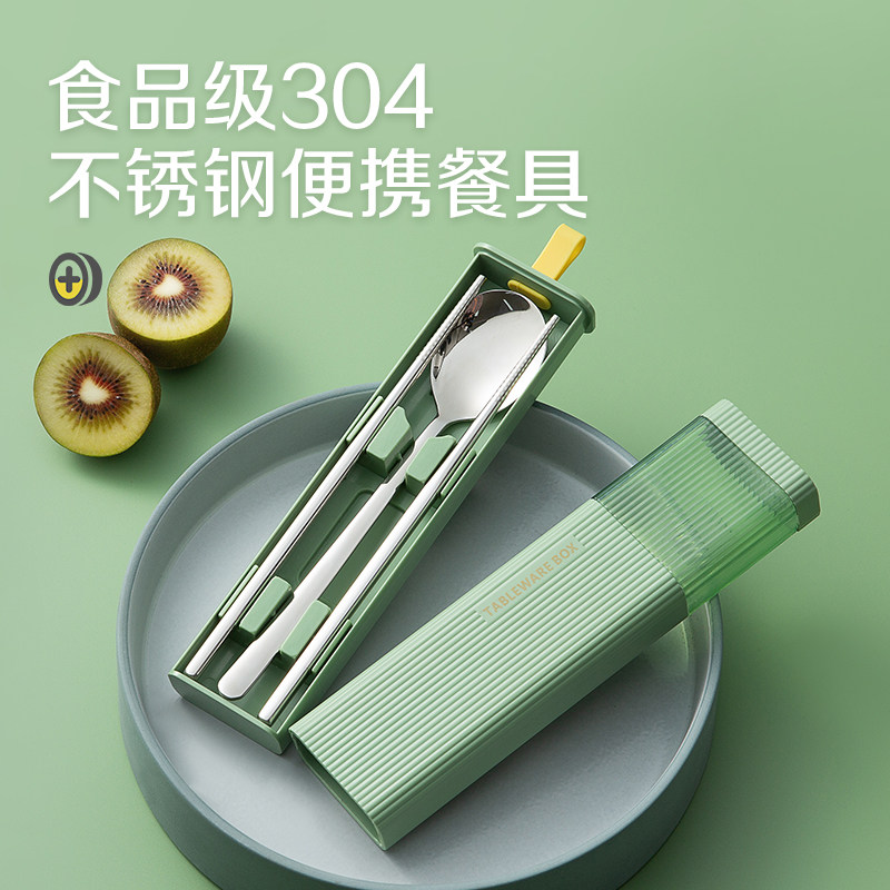康宁304不锈钢餐具便携带盒外出金属筷子勺子套装收纳盒旅行