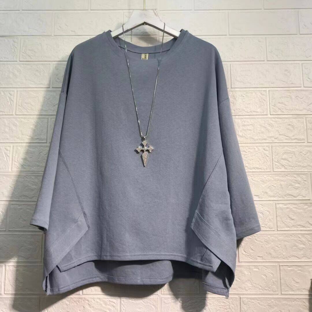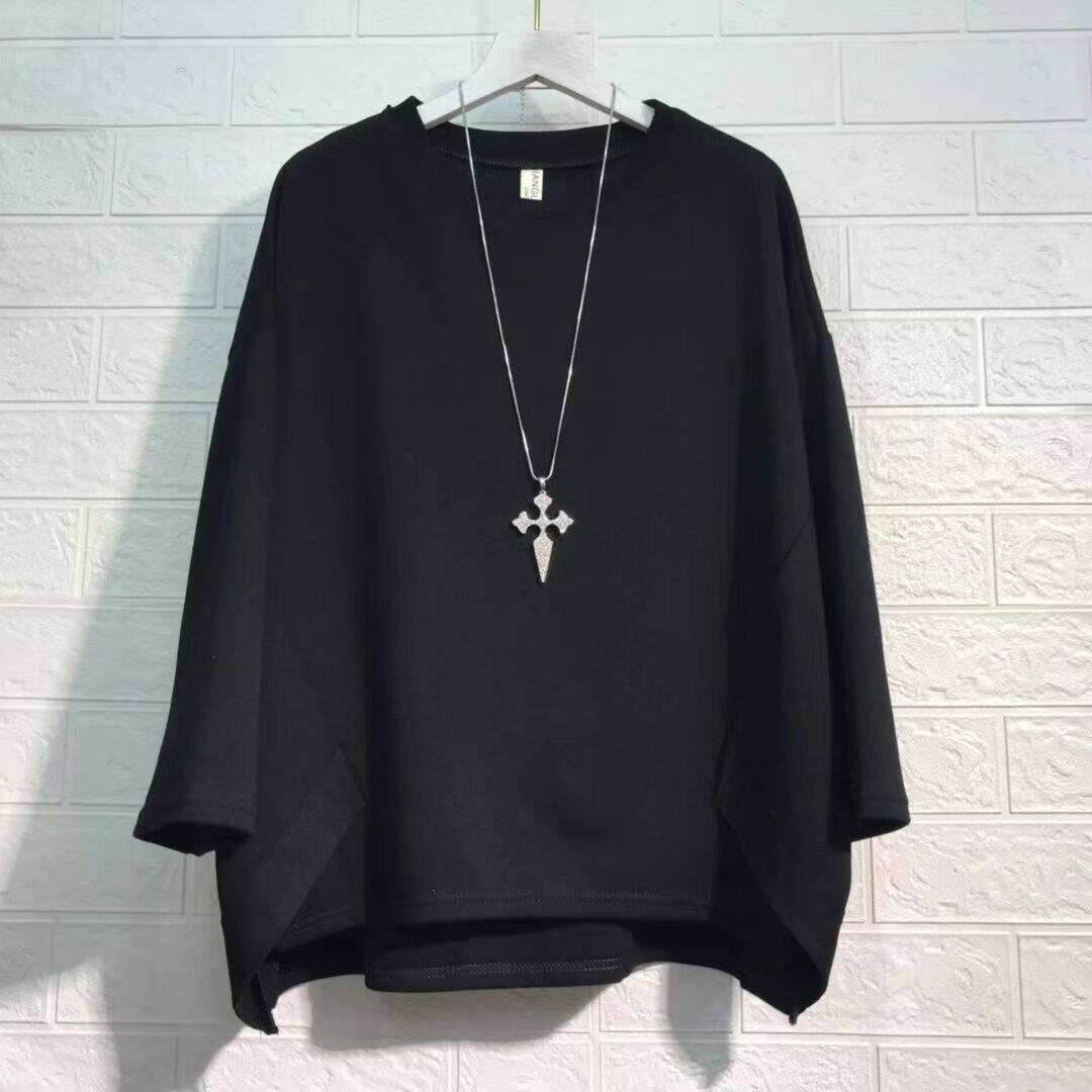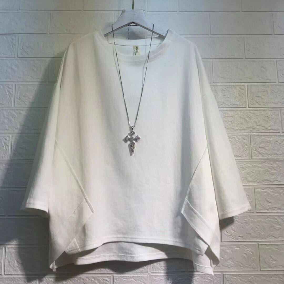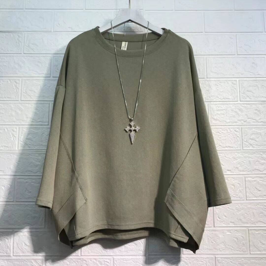 秋装新款时尚不规则纯棉T恤圆领遮肚大码上衣宽松休闲套头卫衣女t