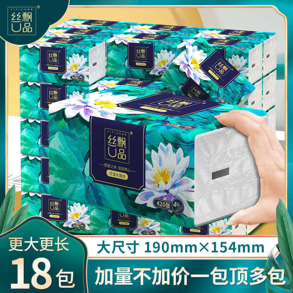 丝飘抽纸大尺寸加厚丝飘U品抽纸巾家用整箱实惠装餐巾纸擦手纸抽