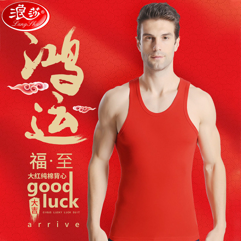 淘宝贴身内衣专家,浪莎男士大红色本命年100%纯棉汗衫