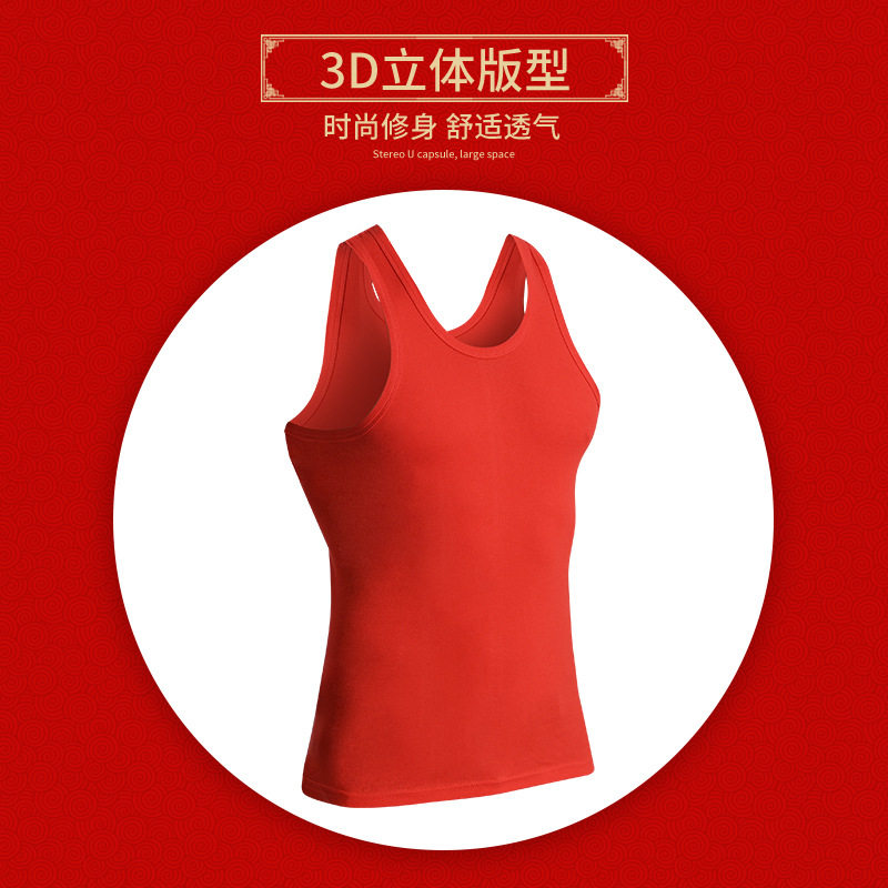 浪莎背心男士大红色本命年结婚100%纯棉全棉打底内穿青年无袖汗衫