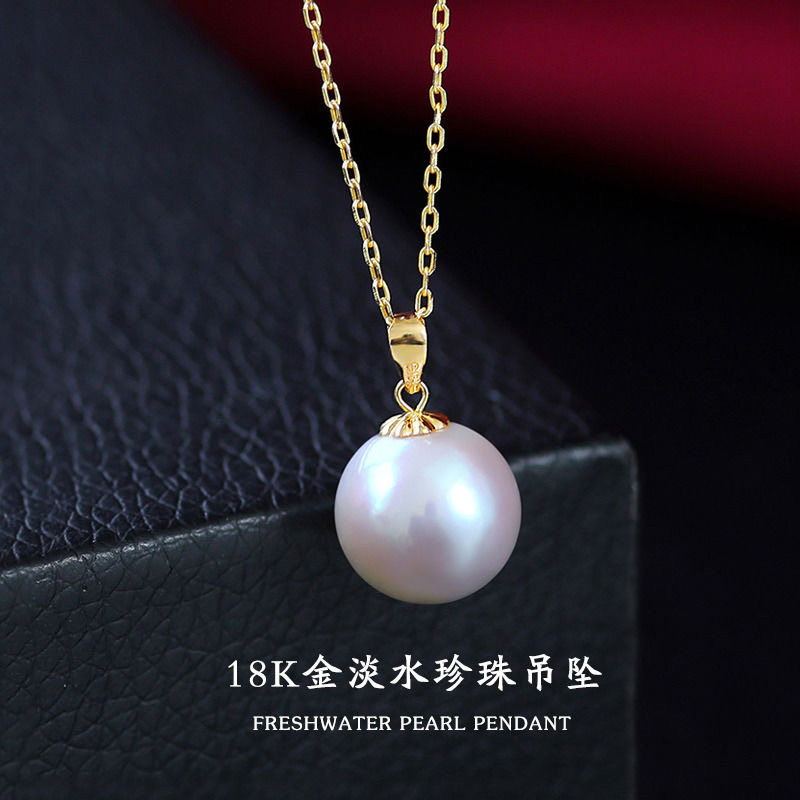 天然淡水珍珠18k金瓜子扣大白吊坠经典百搭简约气质女人节日礼物