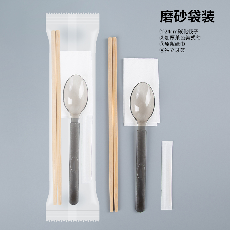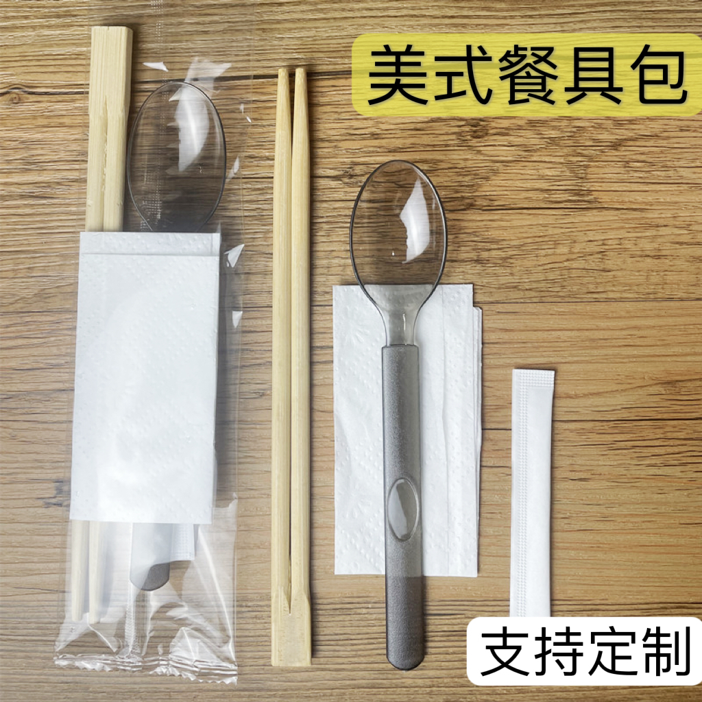一次性美式勺筷子四件套餐包外卖拌饭轻食加硬叉勺纸巾牙签定制