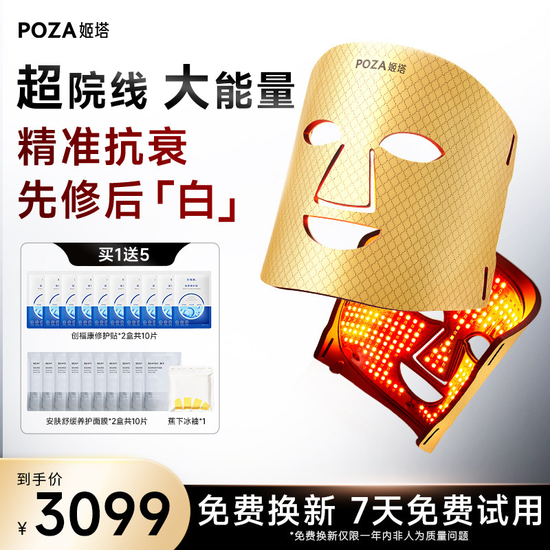 POZA黄金面罩超光子嫩肤祛痘家用嫩肤脸部大排灯美容仪红蓝光