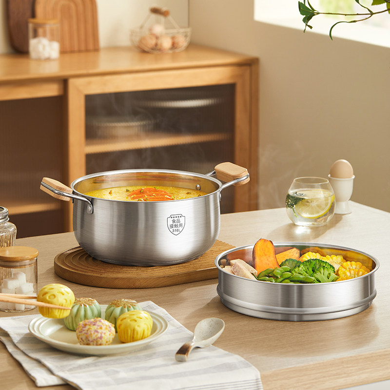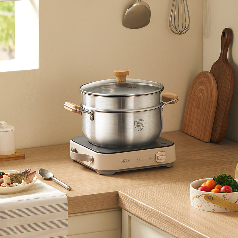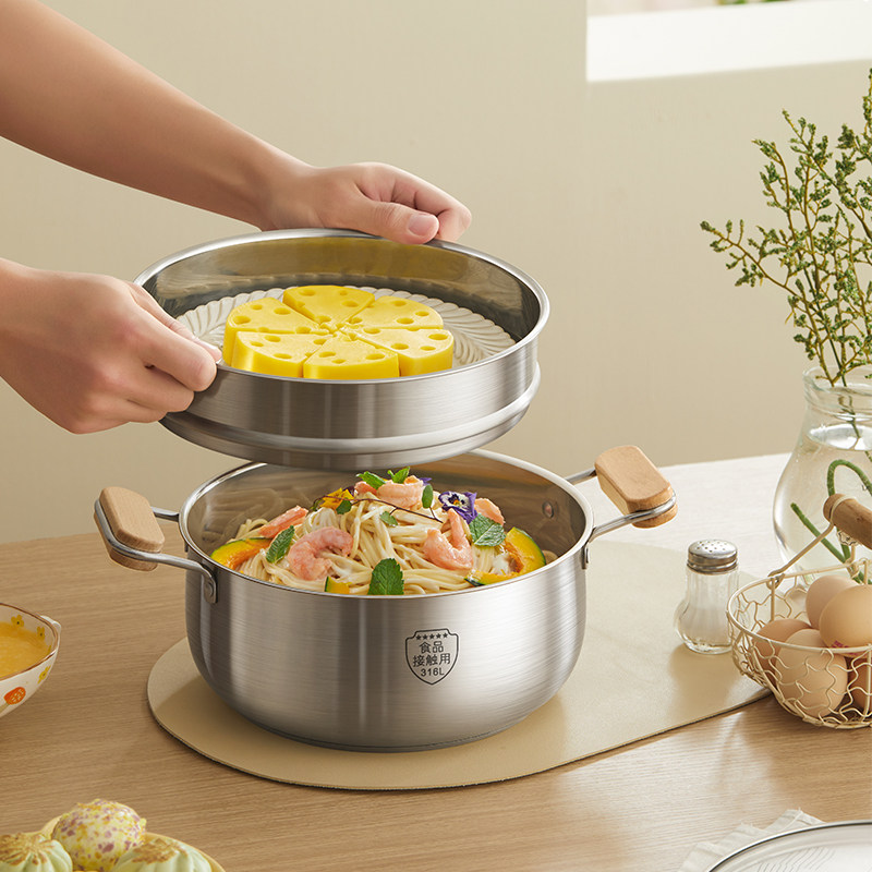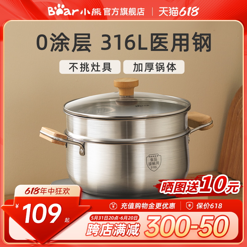 小熊汤锅家用316L食品级不锈钢锅加厚蒸锅煮锅无涂层电磁炉双耳锅