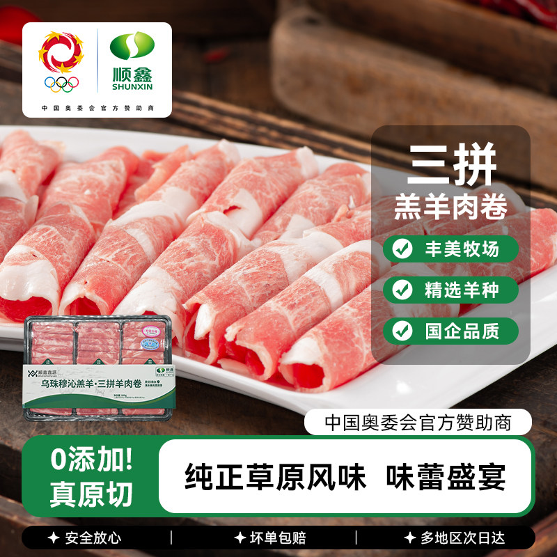 顺鑫鑫源三拼羊肉卷内蒙古乌珠穆沁原切涮新鲜肥羊片上脑羊腿脆骨