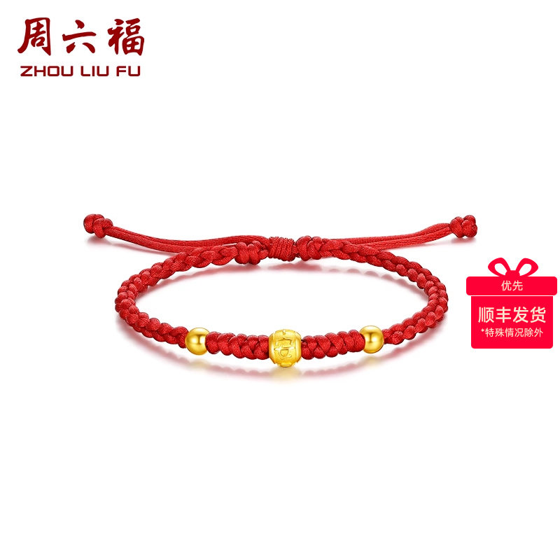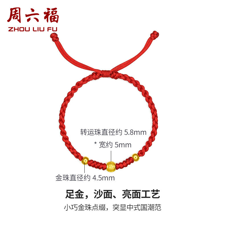 天猫周六福旗舰店,黄金周六福手链女足金福招财纳,圆珠造型 招财纳福