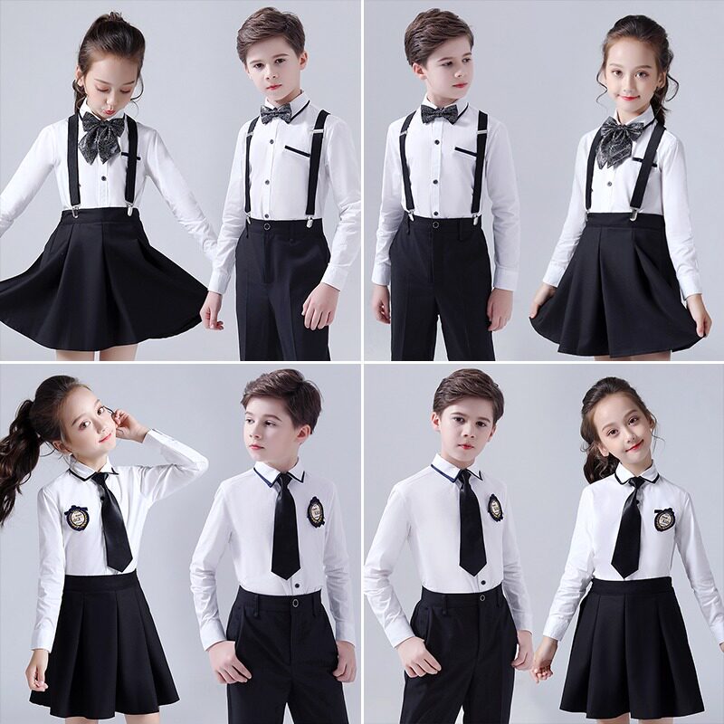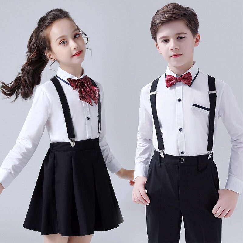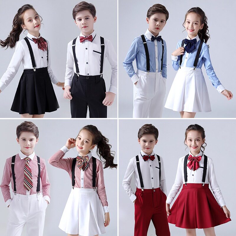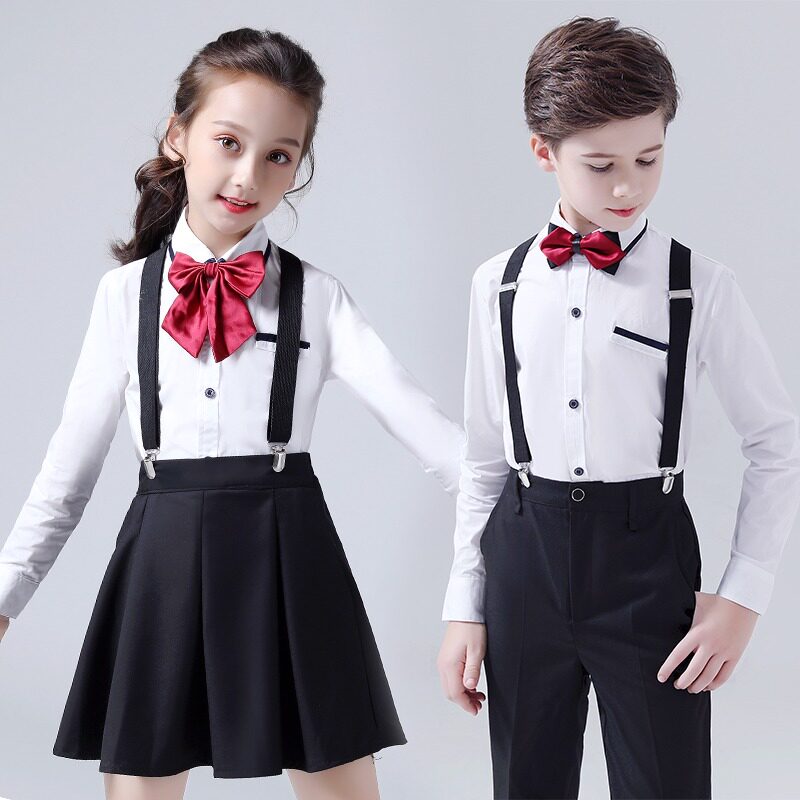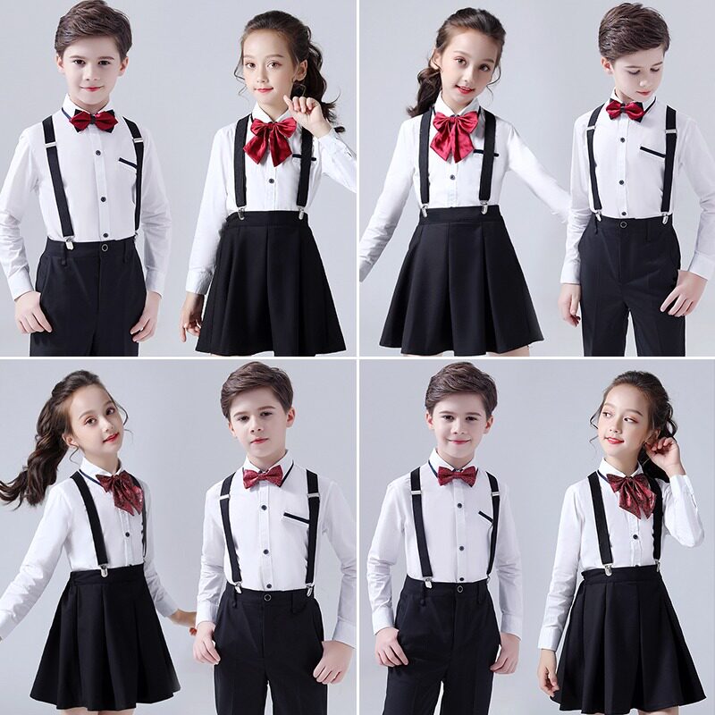 儿童大合唱演出服中小学生背带裤礼服套装男童校服套装女童班服