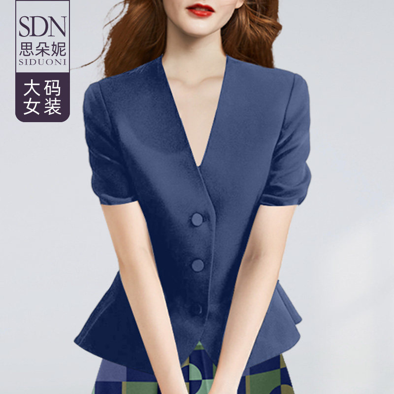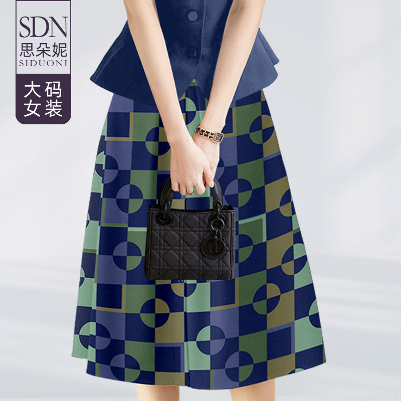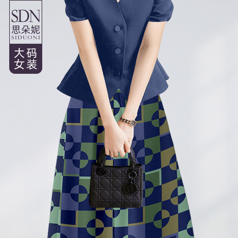 天猫思朵妮旗舰店,大码女装气质印花半身裙西装上衣套装夏季新款胖mm收腰显瘦两件套