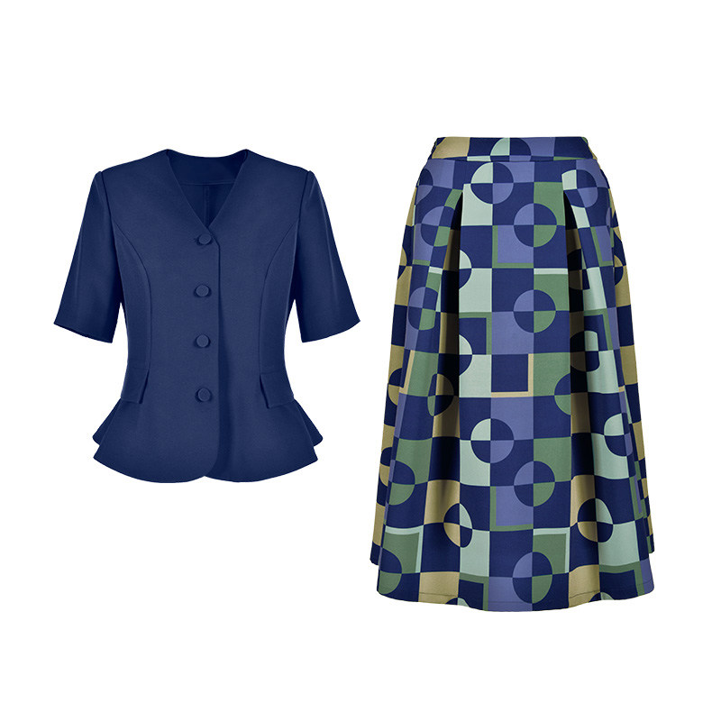 大码女装气质印花半身裙西装上衣套装夏季新…