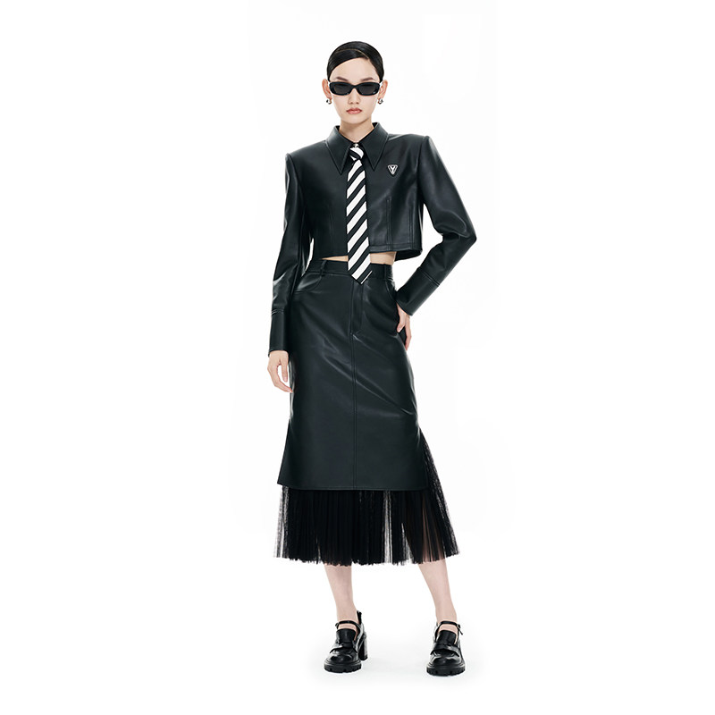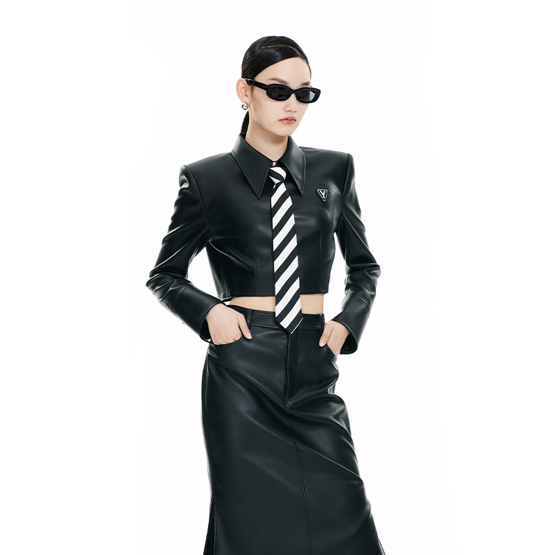 天猫YES BY YESIR旗舰店,女杀手皮质领带衬衫外套