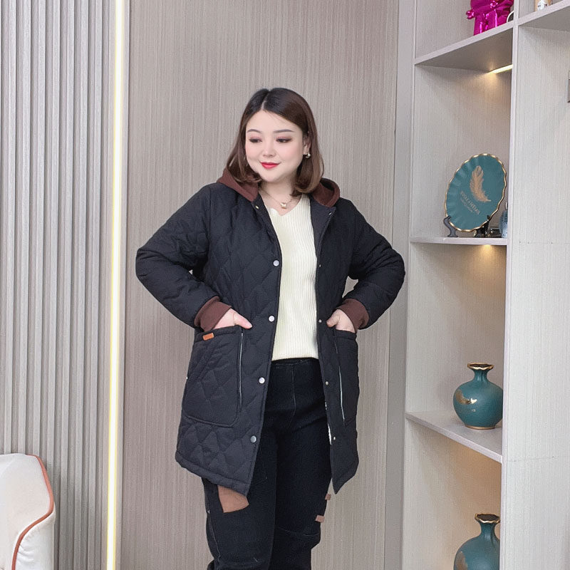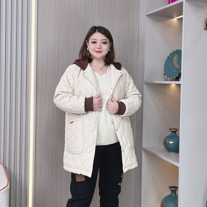 淘宝维c胖衣坊,2023新款冬季大码女装胖mm中长款宽松显瘦保暖加绒外套连帽棉衣服