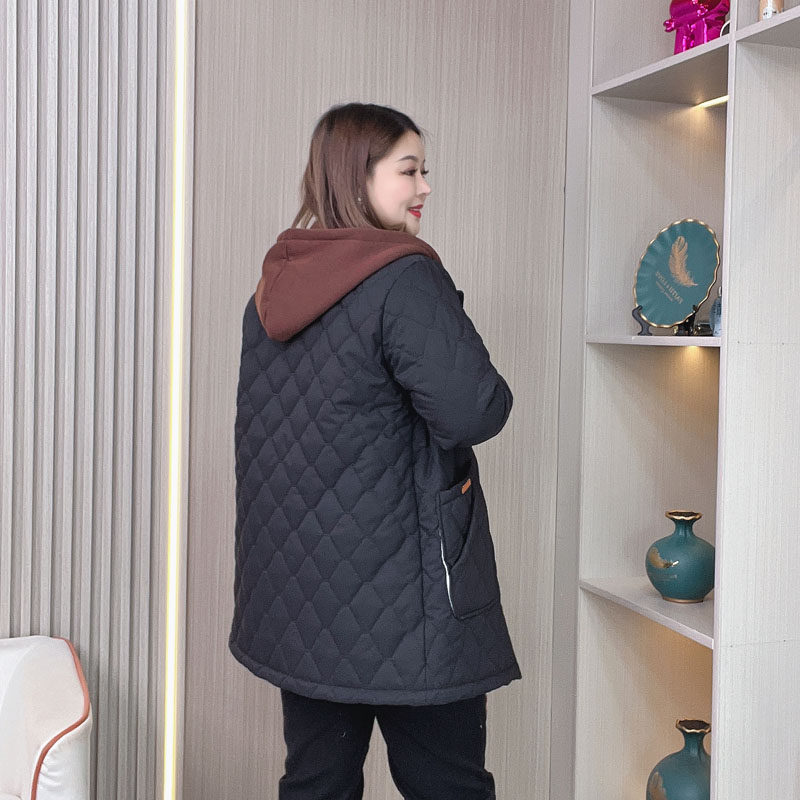 2023新款冬季大码女装胖mm中长款宽松显瘦保暖加绒外套连帽棉衣服