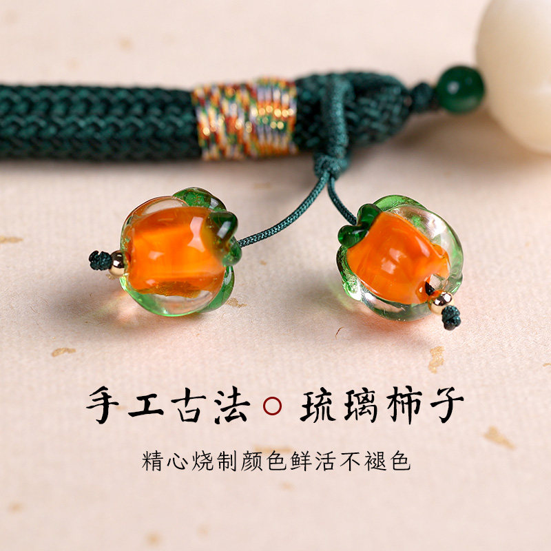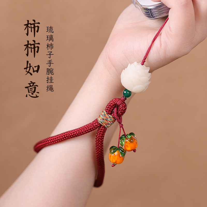 淘宝花暖造物,柿柿如意手机挂件短款绳男女琉璃柿子挂坠钥匙扣U盘防丢手腕挂绳