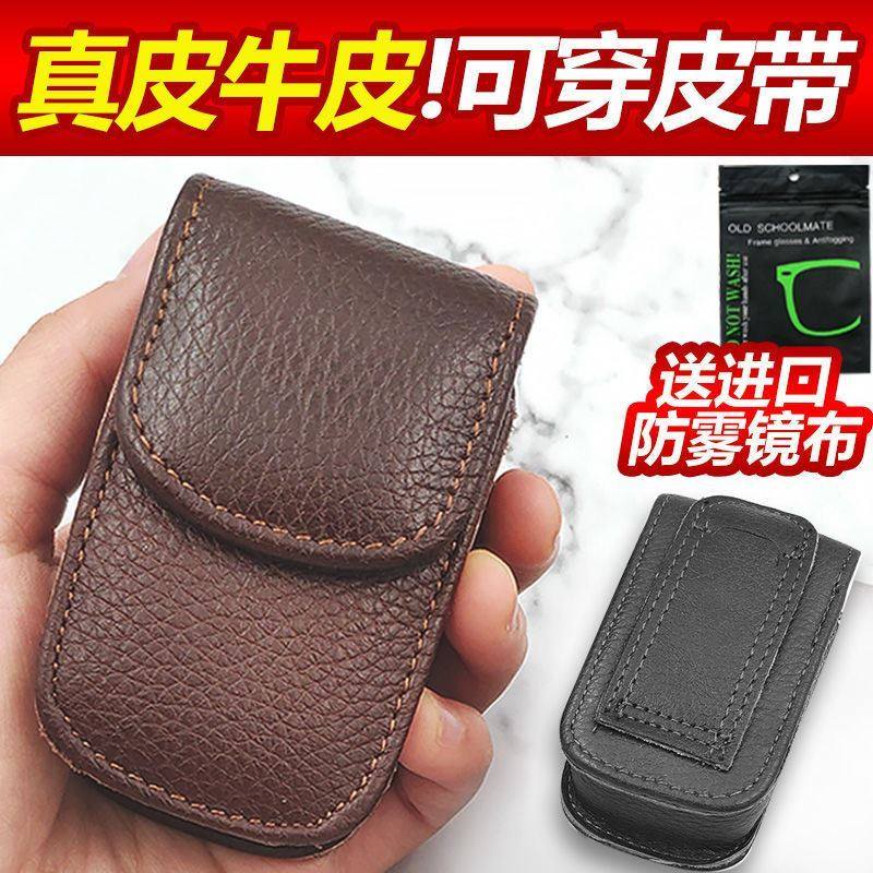 淘宝多味百货商贸,头层牛皮真皮手感折叠老花镜眼镜盒防压可穿皮带挂腰包男皮套便携