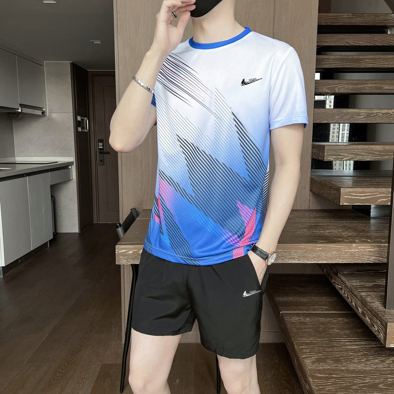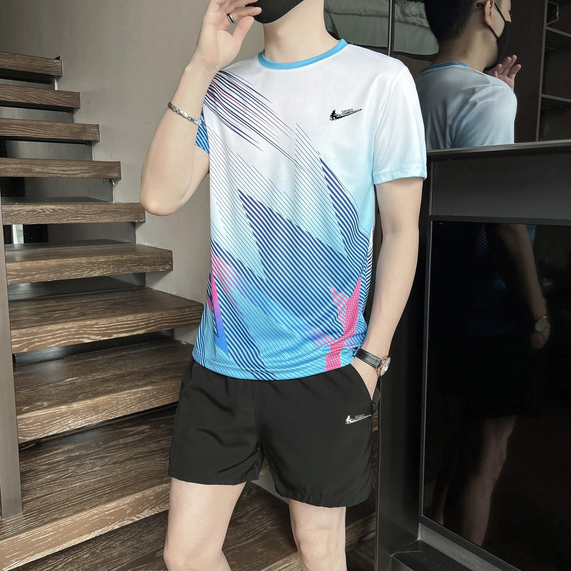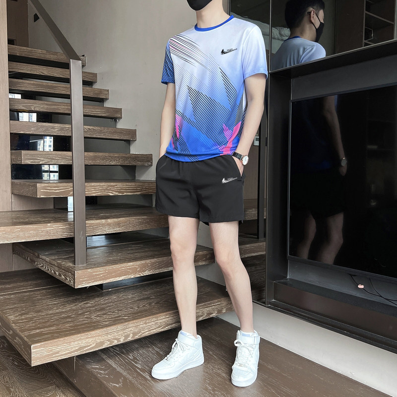 耐克顿运动套装男女夏季男款圆领透气速干T恤跑步休闲短裤三分裤