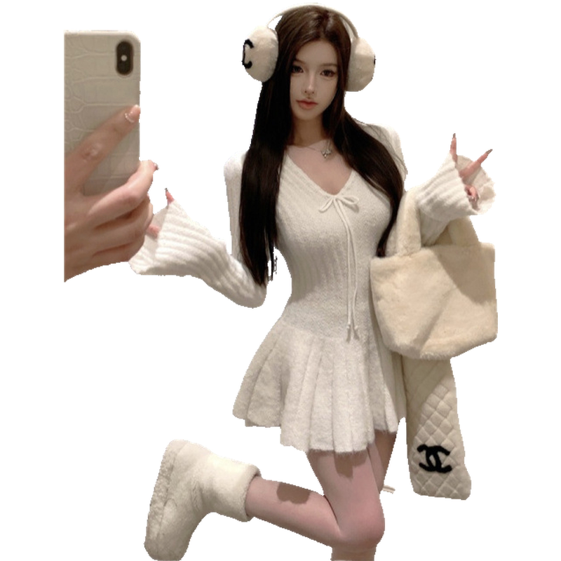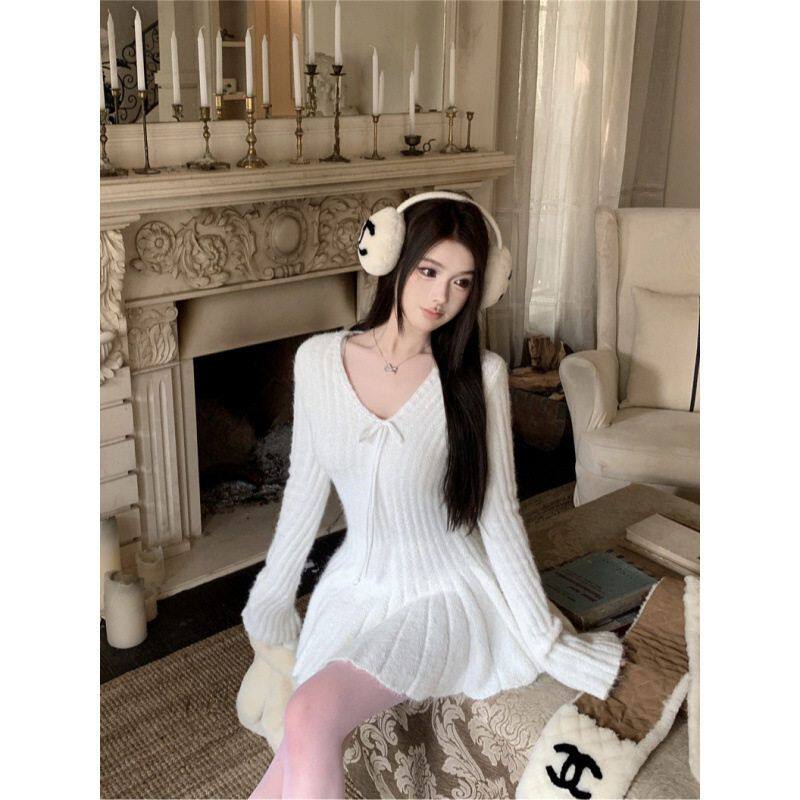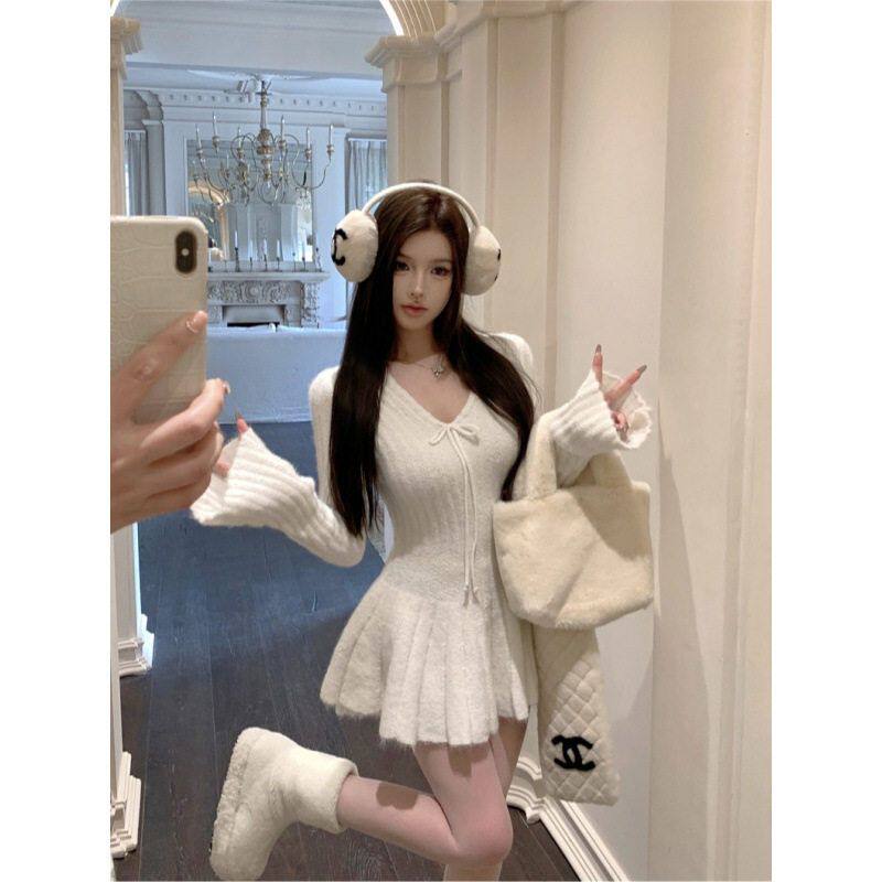 高腰蓬蓬裙连衣裙蛋糕性感显瘦芭蕾女毛线纯欲风短裙