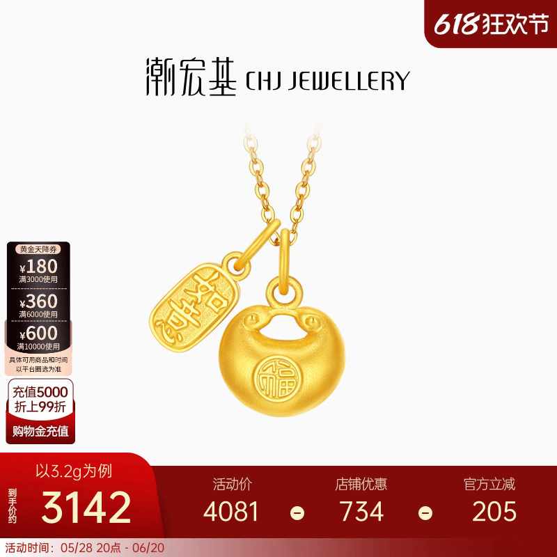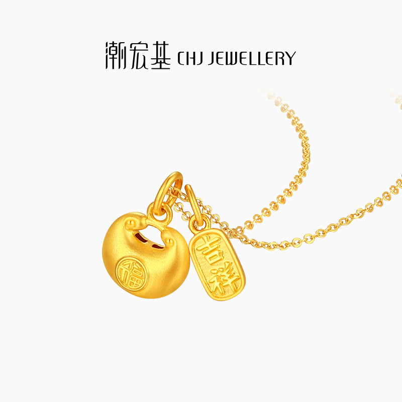 天猫潮宏基珠宝旗舰店,潮宏基臻金弘小胖福足金项链古法黄金坠链如意吊坠生日礼物计价