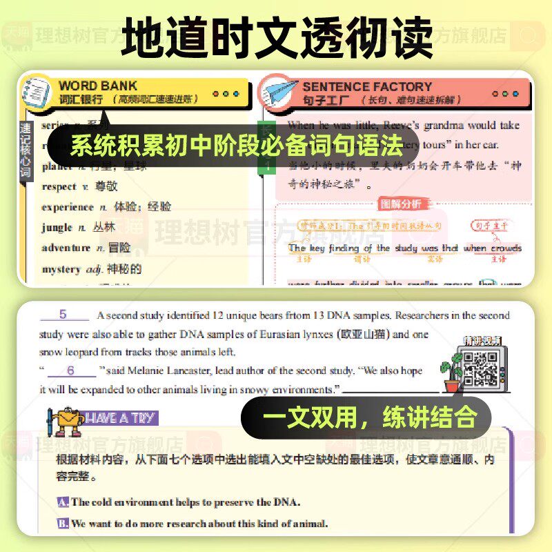 天猫春天图书专营店,2026新版理想树初中英语时文阅读七八九年级中考真题同源外刊合订本七选五阅读理解英语完形填空训练册必刷题初一二三语法热点时文