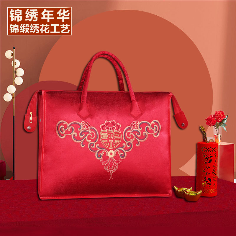手提袋结婚四件套收纳袋刺绣高档陪嫁袋子小被子婚庆伴手礼包装袋