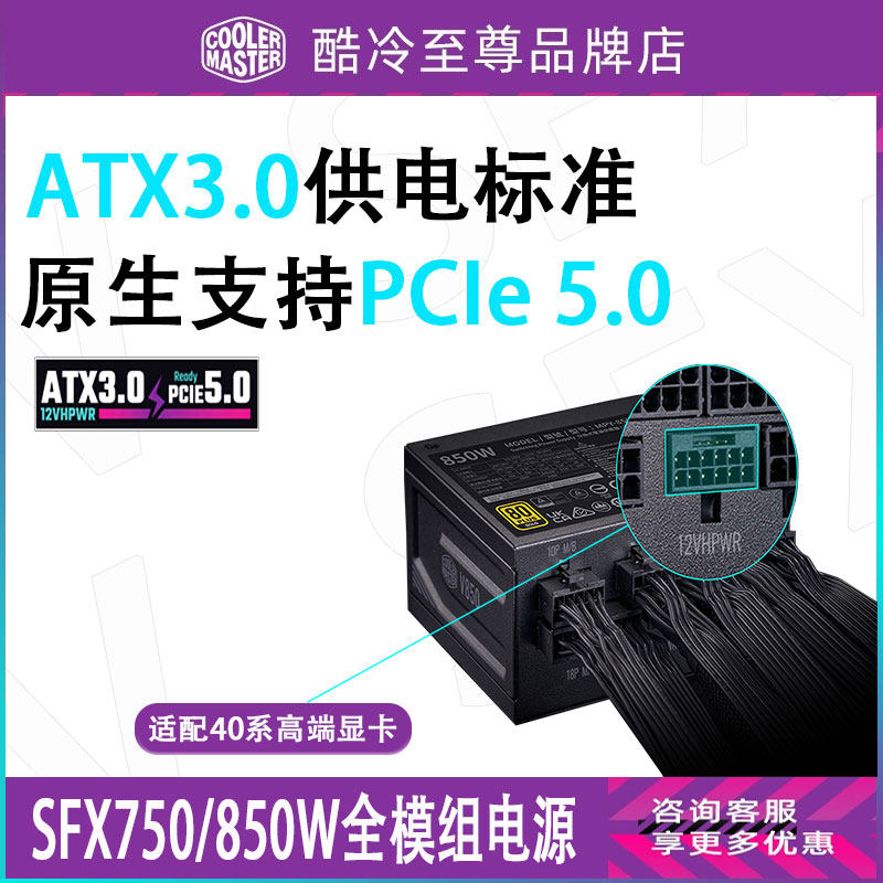 酷冷至尊 SFX V850/V750金牌全模组ATX3.0迷你小电源白色静音电源