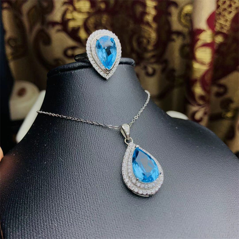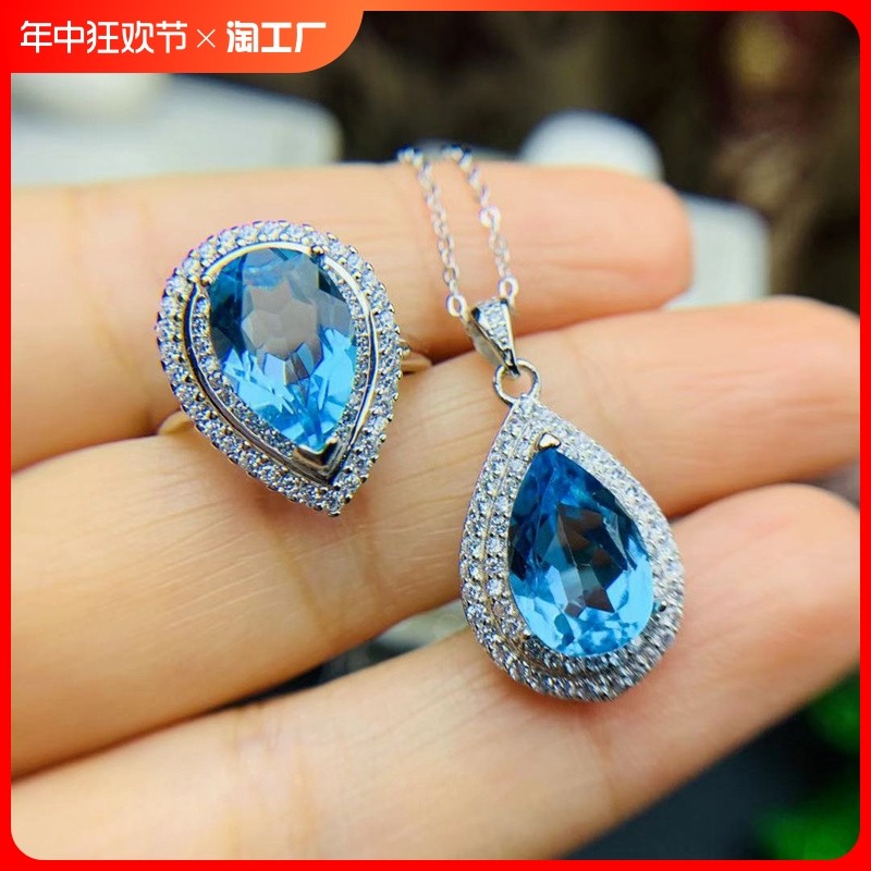 天猫天天特卖工厂店,天然瑞士蓝托帕石吊坠戒指深蓝高贵925银镶嵌指环吊坠项链送女士,潮流精品,品质保证