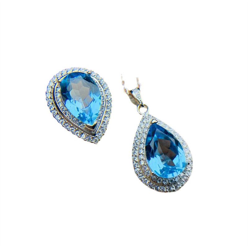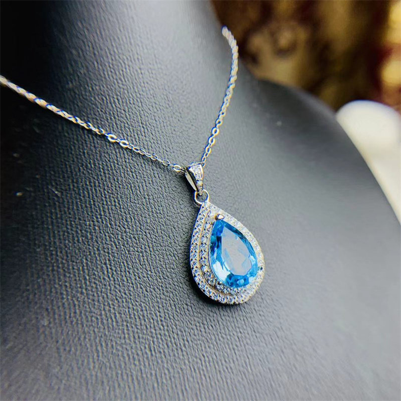 天然瑞士蓝托帕石吊坠戒指深蓝高贵925银镶嵌指环吊坠项链送女士