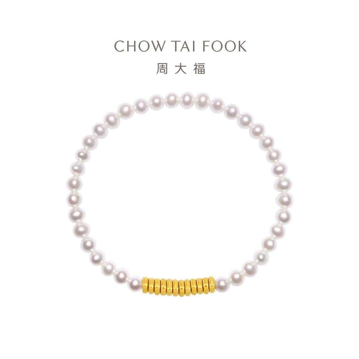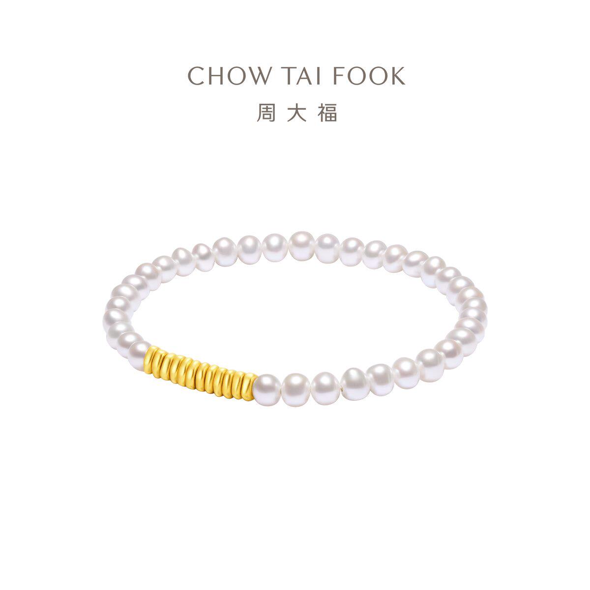 天猫周大福官方旗舰店,周大福碎碎金足金黄金珍珠手串,璀璨珍珠,足金点缀,腕间风情