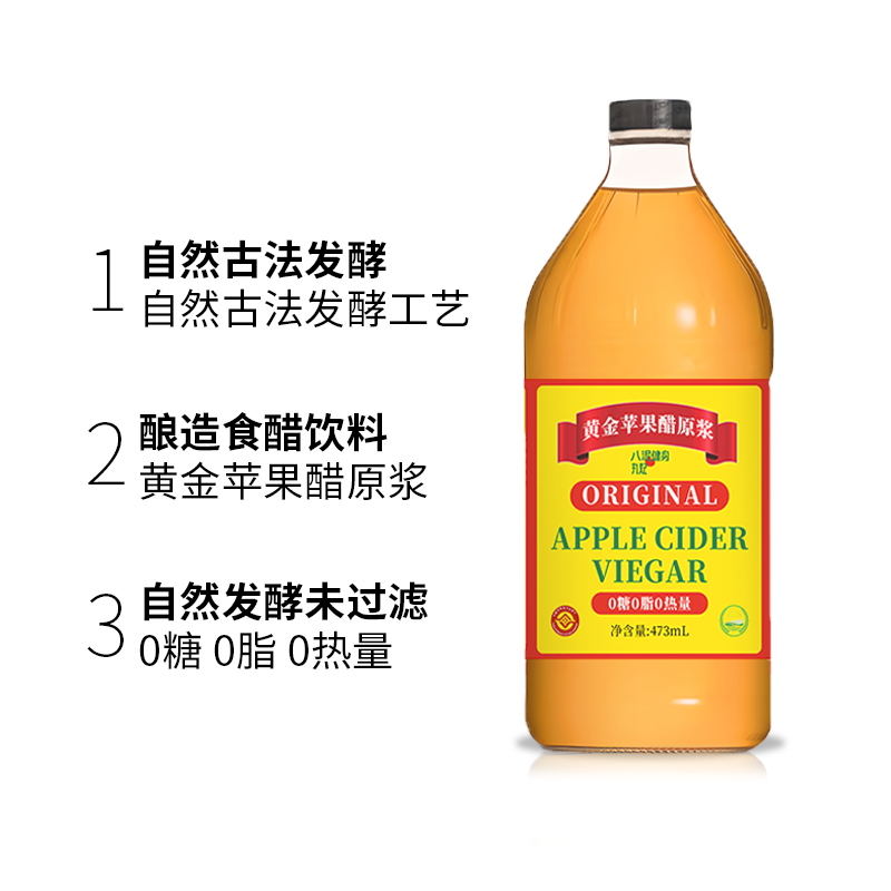 丸妃黄金苹果醋原浆浓缩发酵0糖0脂0热量473ml瓶装