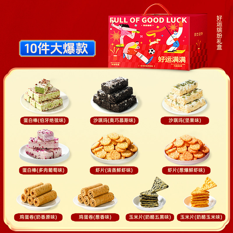 天猫哥本优选旗舰店,零食大礼包沙琪玛蛋白棒虾片礼盒,甄选爆款零食 健康好吃无负担