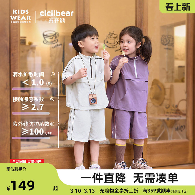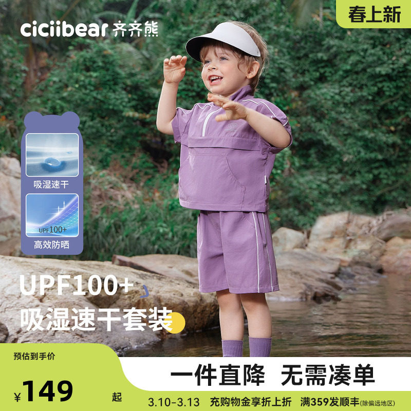 天猫ciciibear旗舰店,齐齐熊宝宝凉感速干UPF100+套装,齐齐熊宝宝凉感吸湿速干防晒短袖2025新款