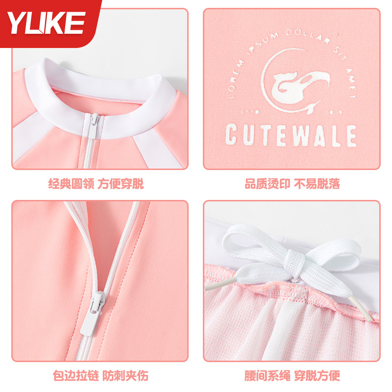 天猫韩启运动户外专营店,儿童泳衣女孩中大童长袖分体,亲肤面料速干透气 分体保守长袖防晒