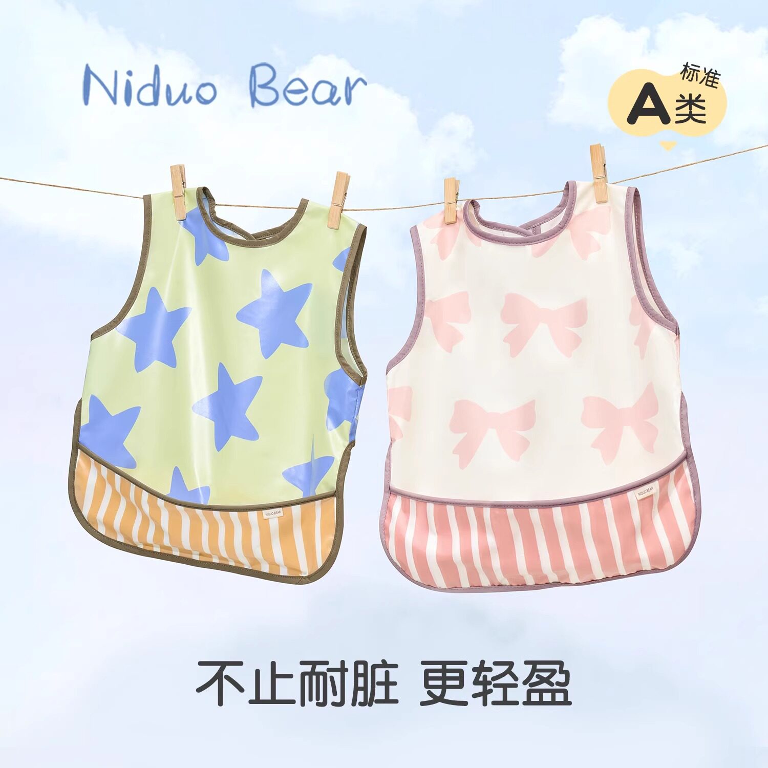 尼多熊2024宝宝罩衣吃饭围兜防水防脏儿童反穿衣婴儿辅食饭兜围裙
