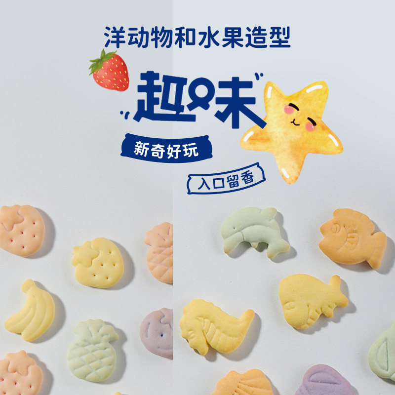尚可诗海洋乐园高钙小奶饼动物造型水果蔬菜儿童营养饼干小零食