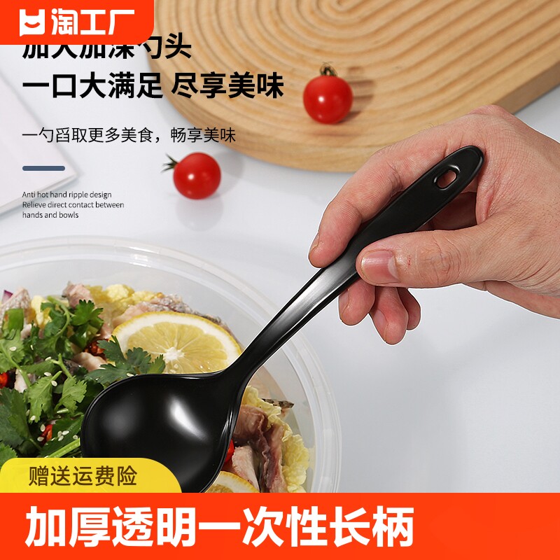 天猫天天特卖工厂店,畅达加厚透明一次性勺子长柄冰粉塑料商用环保调羹独立包装大汤勺,潮流精品,品质保证