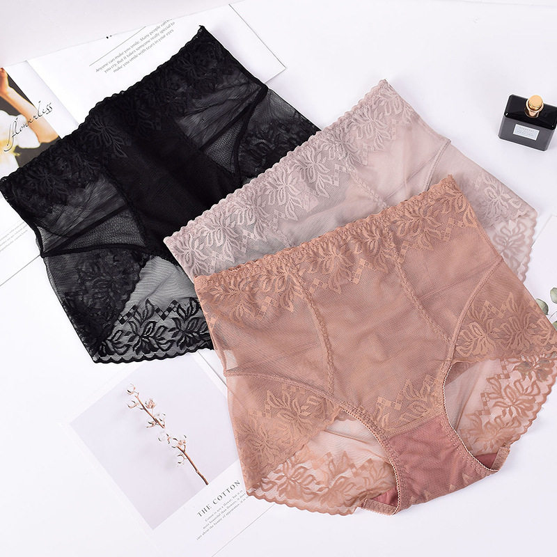 法式性感蕾丝内裤女透明束腰收腹提臀大码弹力日系三角裤春夏薄款