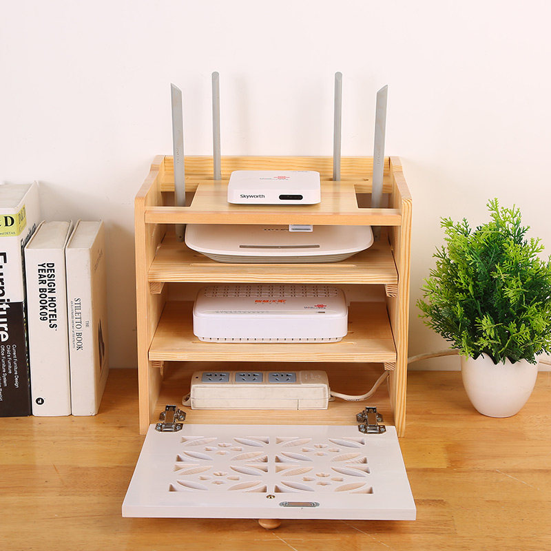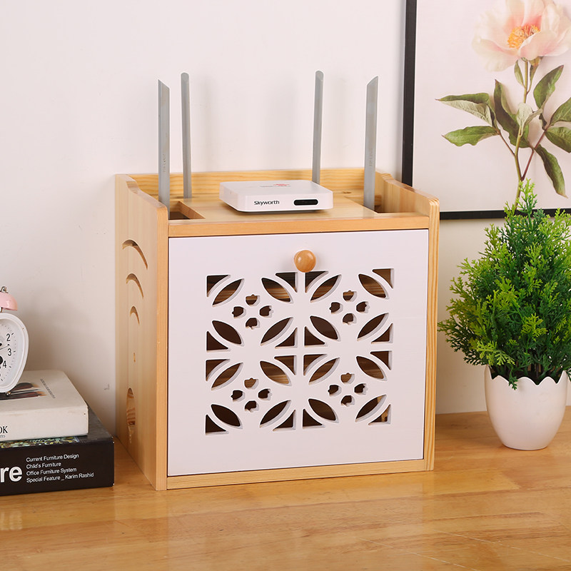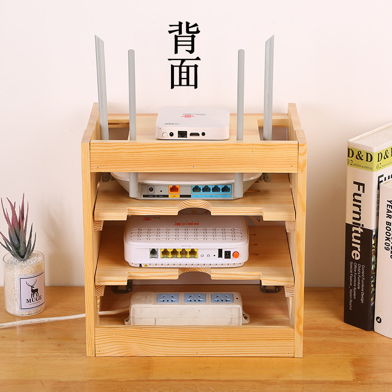 路由器收纳盒实木插排电源线收纳箱无线wifi光猫机顶盒置物架定制
