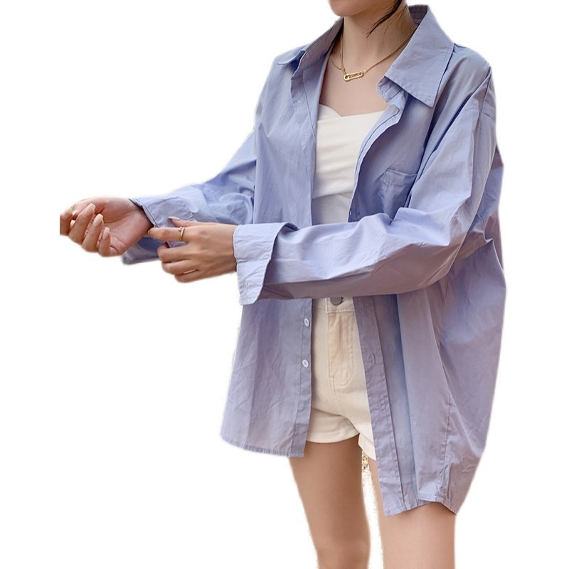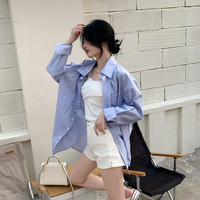 孕妇衬衫上衣春秋外穿韩版时尚宽松中长裤显瘦百搭蓝色内搭打底衫