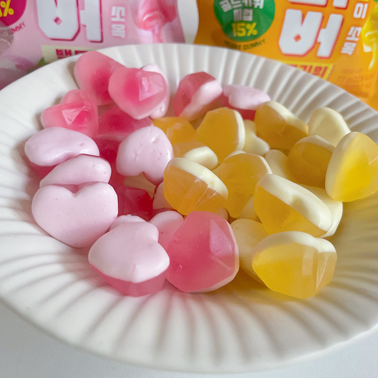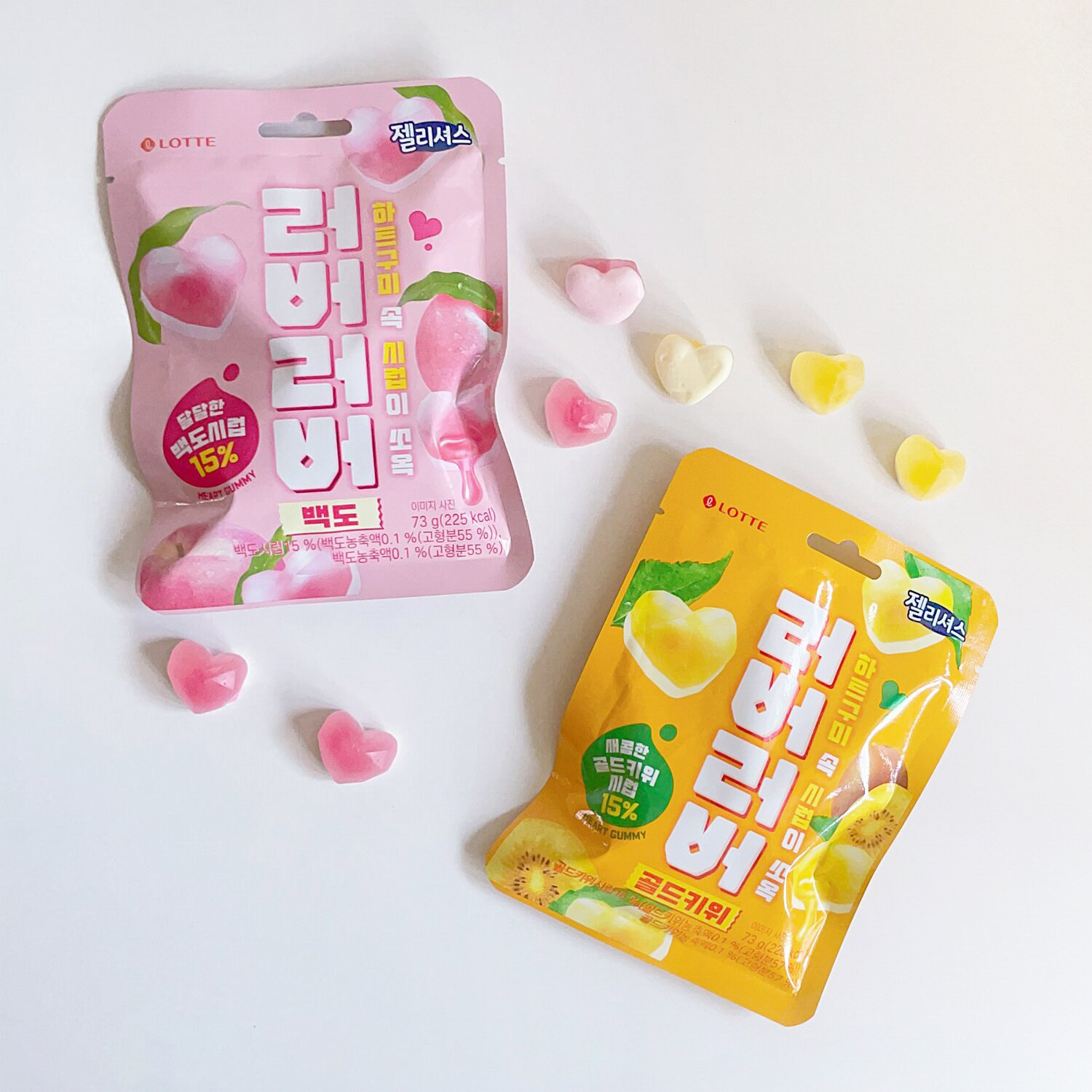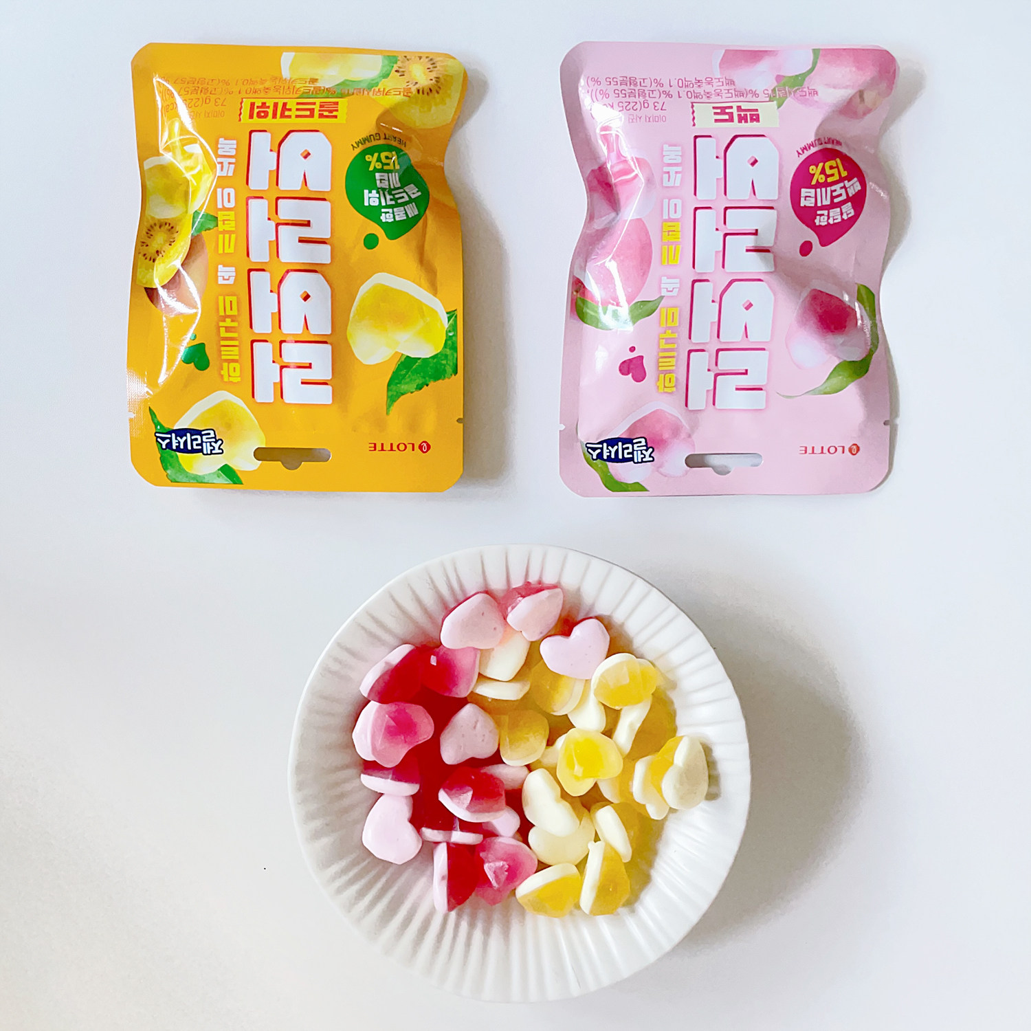 淘宝美食飨宴进口零食优选国货精品饮料酒水,韩国进口乐天宝石心形夹心果汁软糖桃子猕猴桃味QQ糖休闲糖果零食