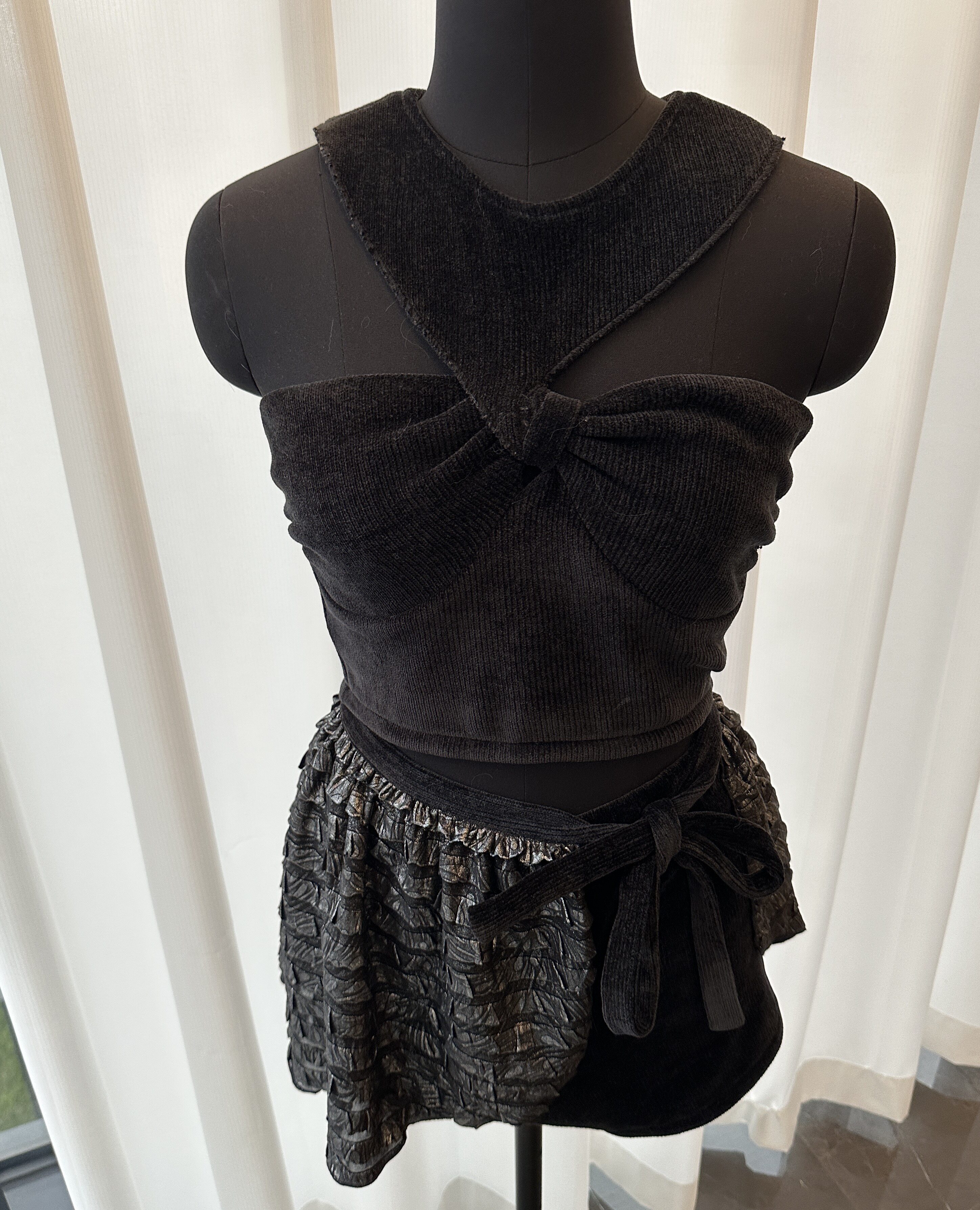 夏媛原创 jennie舞台造型 设计感挂脖背心上衣女高腰绑带短裙短裤