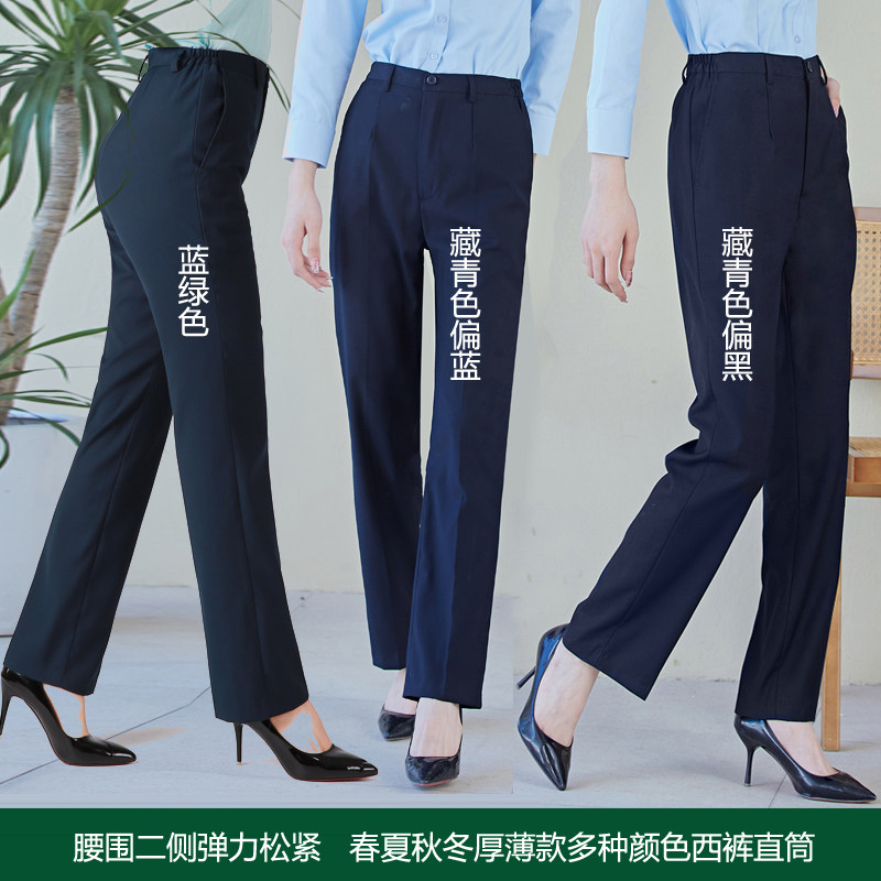 淘宝鸥爵制服,蓝黑色直筒春夏移动工作服裤子