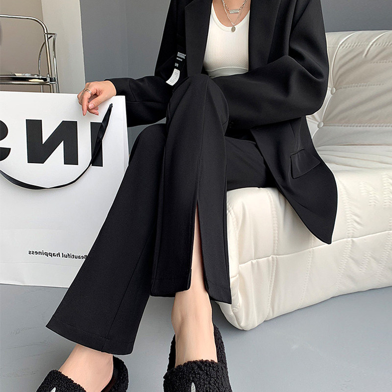 黑色孕妇微喇叭裤子春秋季薄款秋装打底裤休闲拖地开叉西装裤长裤