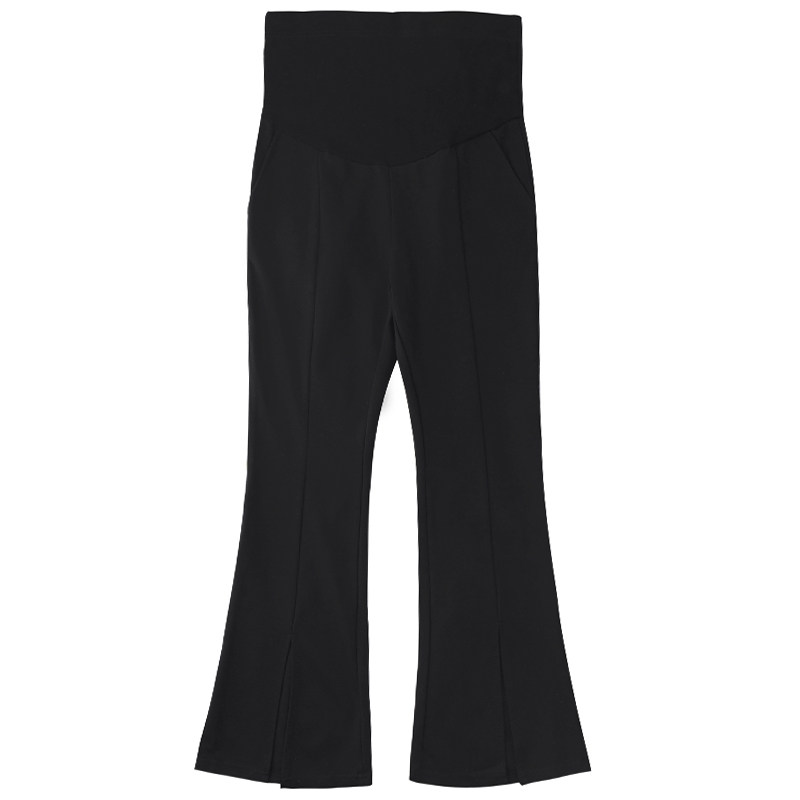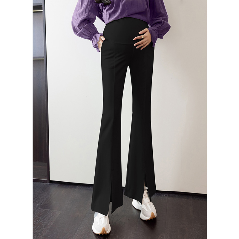 布衣妈咪黑色孕妇开叉微喇拖地裤