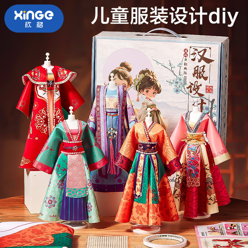 天猫欣格旗舰店,汉服服装设计儿童手工制作玩具,儿童服装设计 唐朝古风汉服