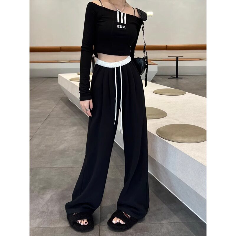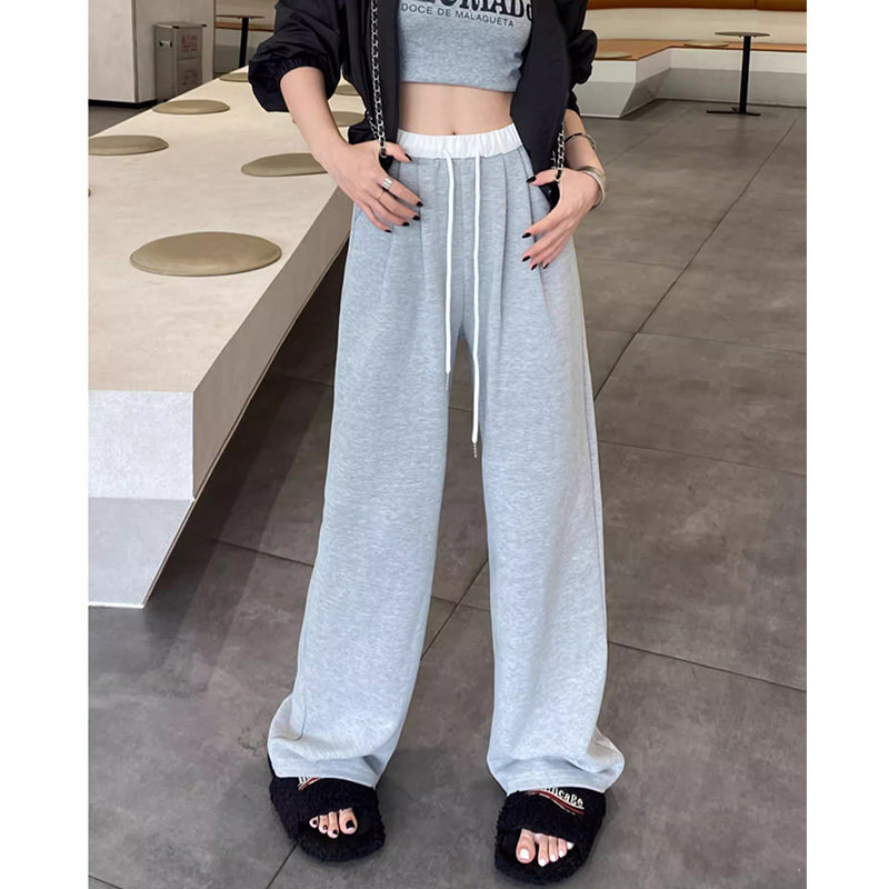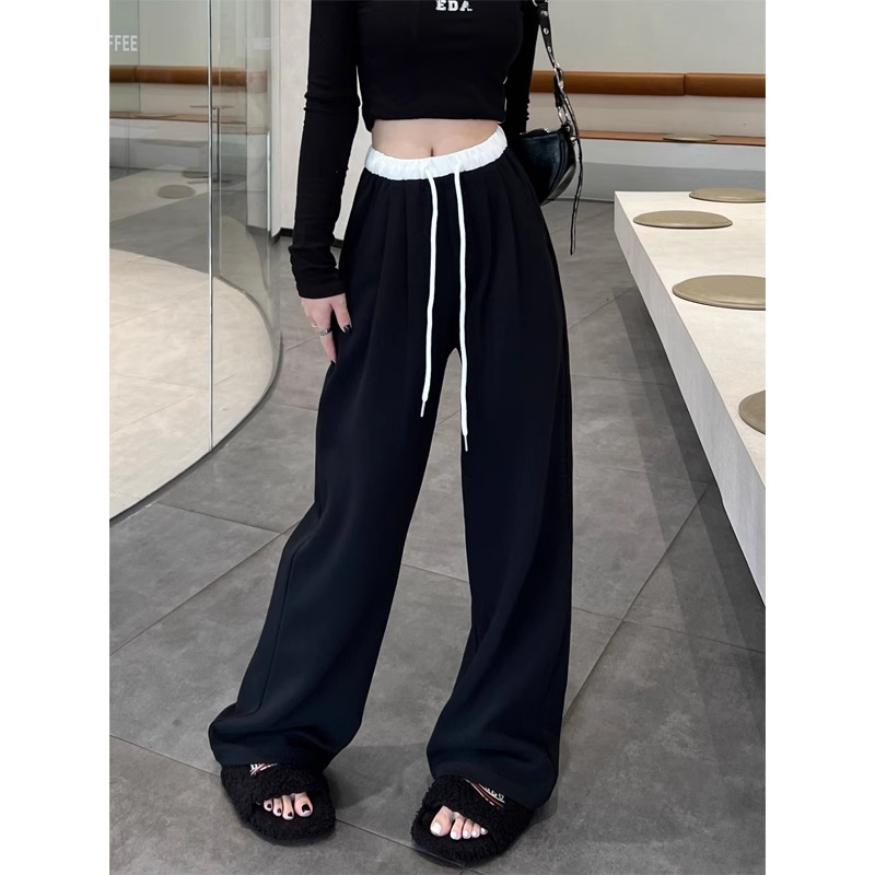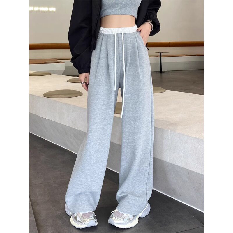 天猫淘工厂美妆直营,女生阔腿运动裤女2024新款大码女装休闲卫裤纯棉松紧慵懒风设计感,微胖女生穿搭美式阔腿运动裤女秋季2024新款