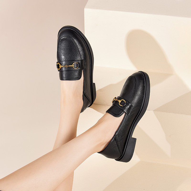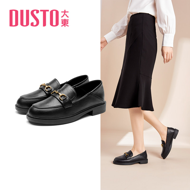 天猫dusto大东outlet店,大东小皮鞋女2023秋季新款圆头金属扣方跟套脚单鞋低跟女鞋2756